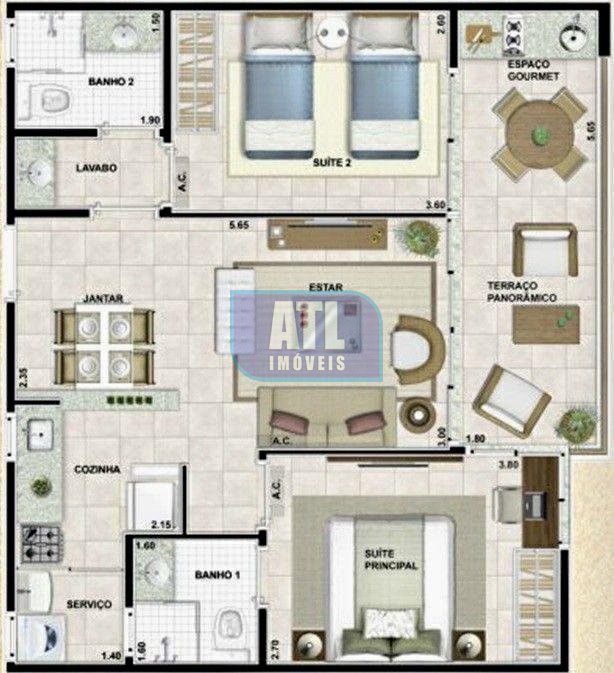 APARTAMENTO COM 68,42 M2 / DUAS SUÍTES / SALA PARA DOIS AMBIENTES / VARANDA GOURMET DE FRENTE PARA PISCINA / LAVABO / COZINHA AMERICANA COM AREA DE SERVIÇO .